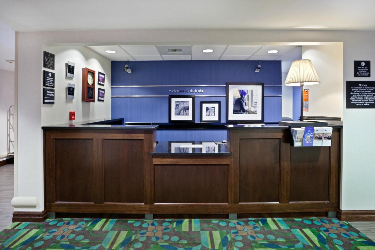 Start your day right with Hampton’s free hot breakfast served every morning, or an On the Run® Breakfast Bag, available Monday through Friday. Host an important meeting for up to 80 people in our flexible meeting space and catch up with business in our business center. After busy day conducting business, refresh with a swim in the indoor pool and hot tub, re-energize in the fitness center at our Hampton Inn Du Bois hotel, or enjoy free access to the YMCA only two miles away.