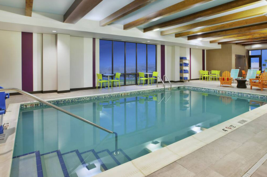 Opened in fall 2017, the 107-room hotel features rooms equipped with full-sized kitchens, an on-site laundry and fitness facility and large outdoor relaxation areas featuring a fire pit and barbecue grill. With an emphasis on sustainability and eco-consciousness, the Home2 boasts a heated saline pool and recycling stations on each floor.