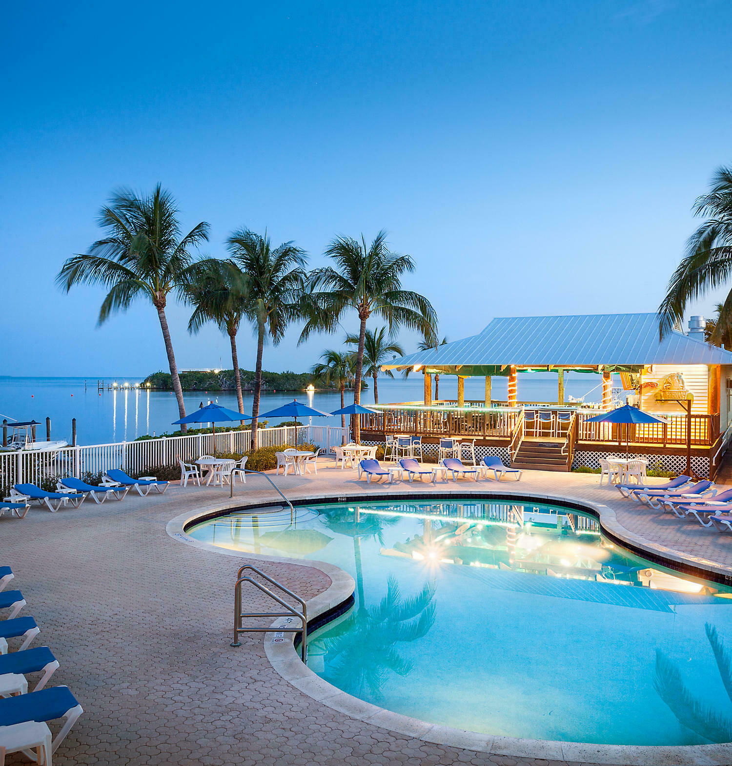 Spend a sunny afternoon poolside working on your tan while enjoy a beverage fresh from Barnacle Barney's, the resort's tiki bar and grill overlooking the on-site marina. Barnacle Barney's serves beer, wine, frozen drinks and offers a full menu, including local favorites from both land and sea. Gaze into the clear lagoon waters and admire a menagerie of colorful sea life like parrotfish, tarpon and lobster, plus marvel at the graceful egrets, heron and pelicans roosting among the mangroves. And don’t be surprised to see an iguana or two perched amid the resort’s dense vegetation. Palm trees, hammocks and tiki torches dot the landscape, creating the perfect setting for a relaxing tropical getaway. And be sure to stick around for the resort's "sunset celebration" held every evening and punctuated by a cannon salute as the sun touches the western horizon.