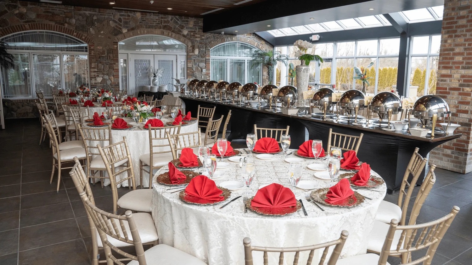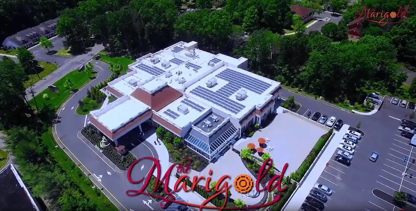 The Marigold, Central Jersey's latest wedding venue is a first-class luxury 36,000 square foot facility with a striking mix of rustic and modern architecture. The first impression is a stunning entryway to an elegant Marie Antoinette-style crystal chandelier, grand wrought iron double staircase, and a baby grand piano. For the outdoor wedding ceremony, two Tuscan style outdoor patios are available featuring a waterfall and a hand-carved European Garden Gazebo with an iron dome for the Marigold Ballroom and a hand-carved arbor for the Sandalwood Ballroom; both professionally landscaped with flowers of the season & privacy trees. Two beautifully appointed ballrooms each feature an adjacent rustic four-season conservatory and a marble-floored social gathering room.